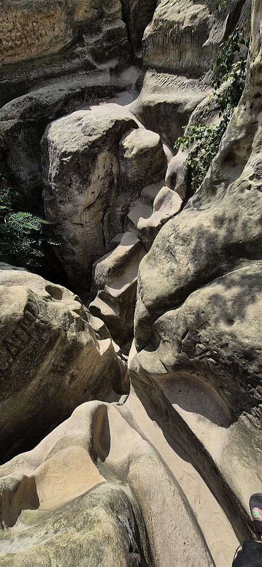 five .. and this can really loosen us up .. reduced arrangements, winding gutters, too deep to be comfortable footpaths, narrow & exact drainage-like lanes .., but no joke at some places judged to be donkey´s trails or mulies´treads, so the shepherd could hold on to the the brave & unirritable four-legged friends .. those to be found up on mountainsides or castles like the regenstein, the underground caves of malta or the klusfelsen, where these paths are said to origin in heavy longtime use by visitors & trailors … but will their steps wear down even harder material up to granit ..? no fairytale forest can be convincing without fabulous animals & talking trees & stones .. & doubters, who form with dough & silvermoon hair ..! very special results require extraordinary forces, temperatures & diligent paws, so its well prepared before eternalizing processes like petrificaton, pouring or imping … deniers be embraced ..!
